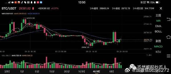 如图所示今日比特币4小时行情处于中轨附近,附图下轨道附近持续震荡上行趋势运行,根据附图显示绿色能量柱处于均线币价MACD以及BOLL底部持续震荡有继续上行趋势,因为当前币价仍旧处于震荡回调向上趋势运行,目前短线来看回调上涨趋势,当前币价会在回调一波,所以操作今日综合来看指标比特币短线币价为逢低做多,今日买入建议操作低位做多,个人建议,仅供参考。