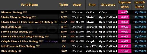 除了这些发展之外,预计加密世界不会有重大新闻。您可以在下表中查看将推出以太坊 ETF 的公司。总共将推出9只ETF,这些ETF将由6家不同的公司推向市场。ProShares将推出最多的ETF。ProShares将推出2个比特币和以太坊ETF和1个以太坊ETF。