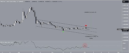8月14日以来,SHIB价格在下行平行通道内下跌。最近,价格在 9 月 11 日的通道支撑线(绿色图标)处反弹。