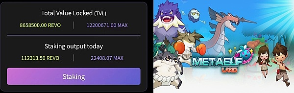 Revolution Land近期宣布启动两大应用生态,首先是质押创世挖矿生态(REVO DAO - MAX),其次是Web3游戏中心(分销市场平台构建 Web3),以及(元灵大陆(MetaElf Lanf)游戏生态。