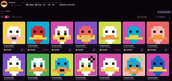 「鹅」,成本可以低到 1 只不到 1 U,最高点时一只能值 40+ U。看看这个总量 10K 的系列,只有 1.2K 的持有者...