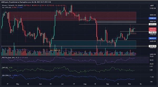 因此,未来几天我们可能会看到 BTC 价格在 27,000 美元和 28,000 美元至 29,000 美元之间波动。