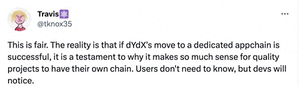 用户可能不关注 dYdX 背后用的是什么技术, 但是开发者关注,尤其是一个应用链在新的生态获得成功之后!