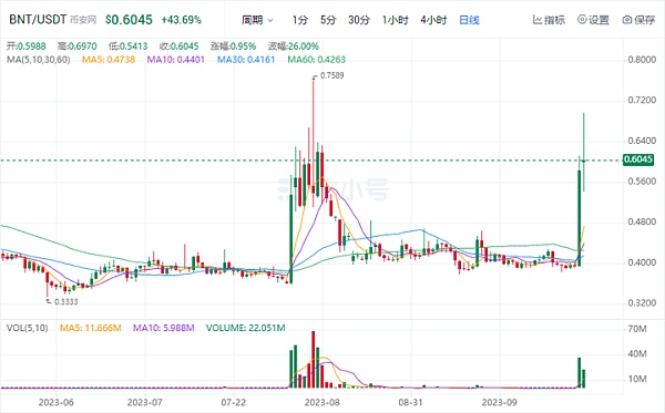 我们来聊聊Bancor (BNT) 它的表现真是让人惊叹!最近,它的价格上涨了50%,成为了市场热议的焦点。这个涨幅不仅让人眼前一亮,更是在整个加密货币市场中都排名第三,实在是太给力了!