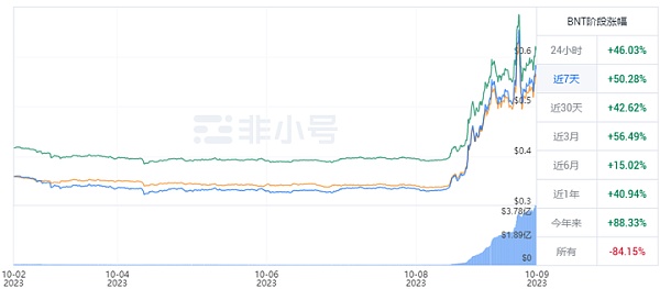 社区消息ARB快速车道协议将套利利润重定向回到Bancor生态系。还有下图BNT的趋势图可以看出在过去24小时里阶段性涨幅46.03%。对于BNT的上涨小咯带大家进一步了解。