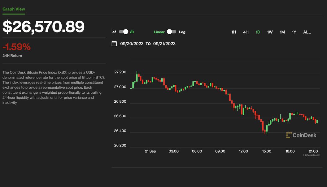 随着利率、美元飙升和股市下跌,比特币跌至 26,500 美元。