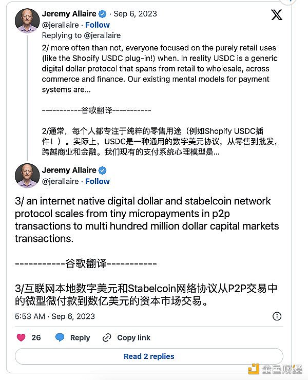 Bromberg告诉Blockworks:“一旦商户获得USDC支付,他们向供应商和员工提供以USDC支付也是合理的。仅仅在支付体系的顶端使用一个稳定币支付可以导致在下游产生一系列复合效应,增加了稳定币在全球支付中的份额。”