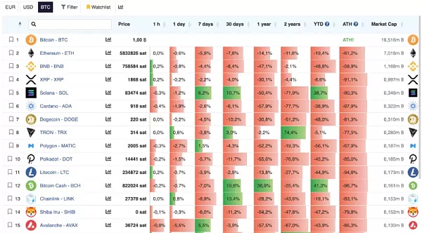 目前加密货币市场整体还是处于熊市,在熊市中,绝大部分代币都是跑不赢 BTC 的。