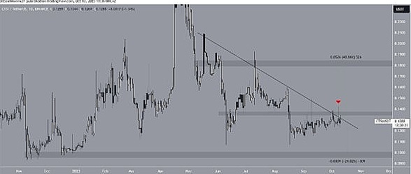 Cartesi (CTSI) 价格仍然遵循下降的阻力趋势线,该趋势线在两天前遭到拒绝。