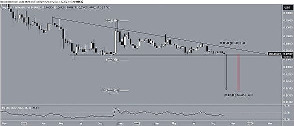 尽管前景看跌,但在 0.057 美元的长期水平支撑区域反弹可能会导致价格上涨。