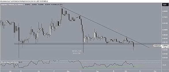 狗狗币的波动性于 10 月 9 日回归,导致支撑区域崩溃。这导致了 0.057 美元的低点,这是自8 月 17 日以来的最低价格,当时山寨币跌至 0.055 美元的低点。