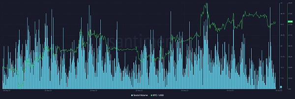 BTC 价格和看涨社交量 – 10 月 10 日 | 资料来源:Santiment