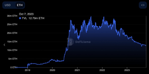截至2023年,你们的TVL已经从1,841万ETH下降到1,279万ETH,这可真不少。摩根大通分析师也开始告诉你们,资金可用性减少,导致参与者收益率下降。