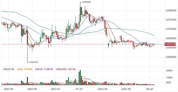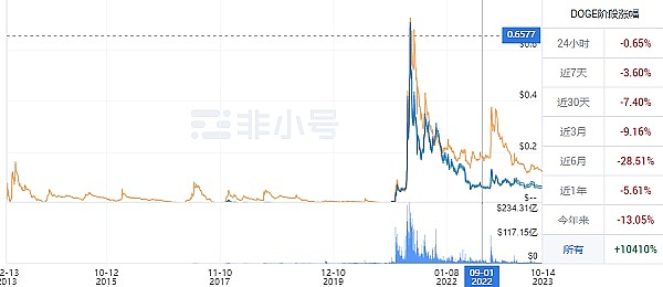 狗狗币(DOGE)在24小时中涨幅为-0.65%,24小时的成交量是41.38亿,24小时的成交额是17.38亿。