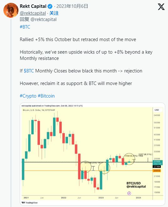 Rekt Capital 等一些分析师认为,在 2024 年期待已久的减半事件到来之前,比特币价格尚未触底。他最近的技术更新显示,在 BTC 跌入 2024 年减半之前,流动性很有可能会突破 22,000 美元和 20,000 美元。牛市。