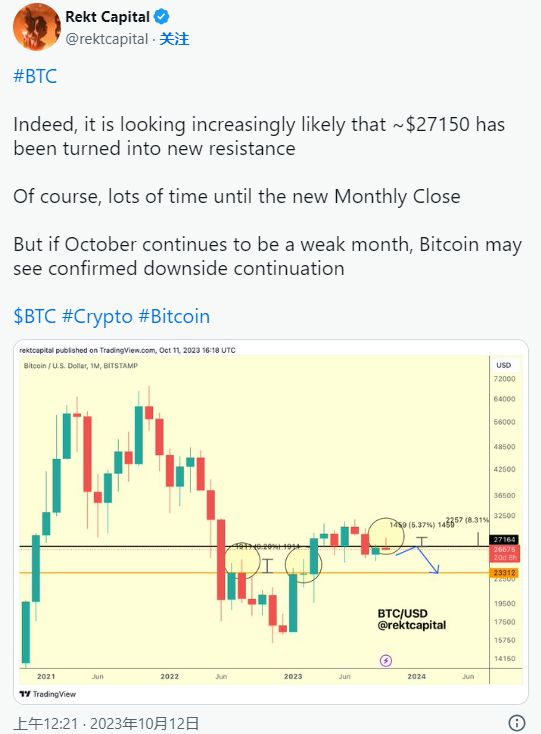 由于对以色列和哈马斯之间冲突的担忧导致管理费用飙升,比特币价格已跌破 27,000 美元。
