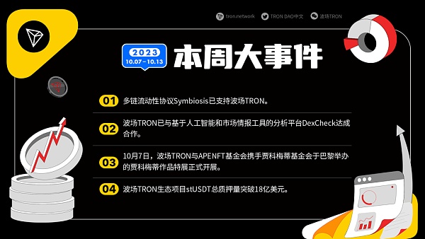 近期,波场TRON取得了多项重要进展和合作成果。首先,多链流动性协议Symbiosis正式宣布支持波场TRON。这一合作将进一步拓展波场TRON生态系统的多链互联互通能力,为用户提供更加便捷和安全的资产流动性管理服务。