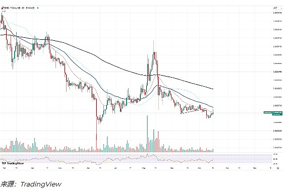 首先,仔细检查 SHIB/USDT 图表可以发现,该代币正在与 21 天指数移动平均线 (EMA) 进行激烈的战斗。21 天均线历来是许多加密货币看涨或看跌势头的决定性指标。
