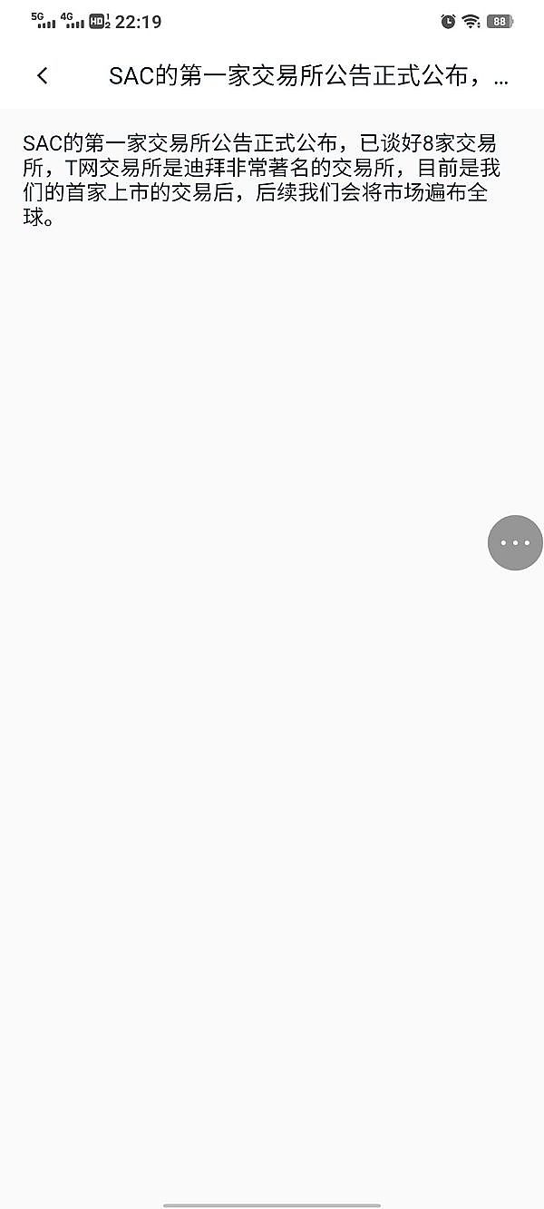SAC的第一家jy所 公告正式公布,已谈好8家jy所 ,T网jy所 是迪拜非常著名的jy所 ,目前是我们的首家上柿 的交易后,后续我们会将市场遍布全球。