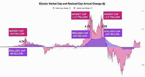 通常,当新资本进入市场并且投资者以更高的价格买入比特币时,已实现的上限就会增加。资产的已实现上限价值基于其最后一次移动时每个代币的价格,而不是其市场价值。