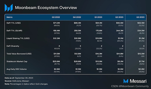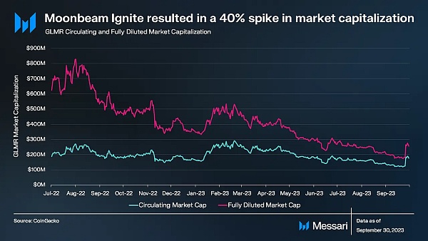 ● 流动性激励计划Moonbeam Ignite的推出与GLMR上线Upbit的消息促使了Moonbeam的市值增长了40%(截至第三季度末)。