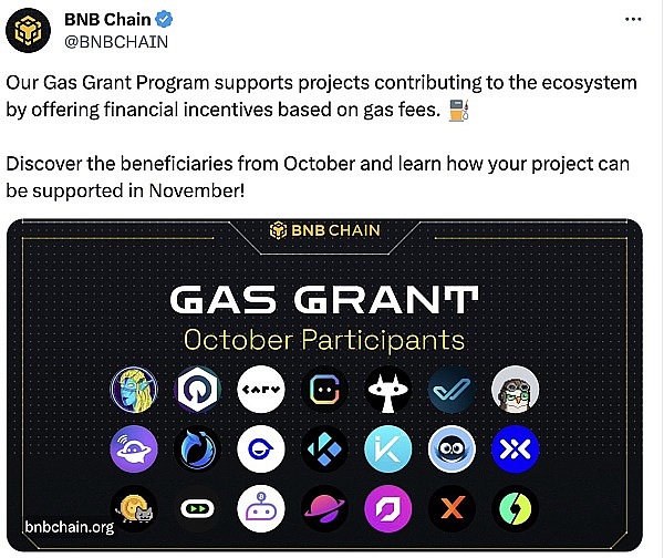 昨日BNBChain官推公布了最新一期GAS费用补助计划项目列表,总共有21个项目入选。