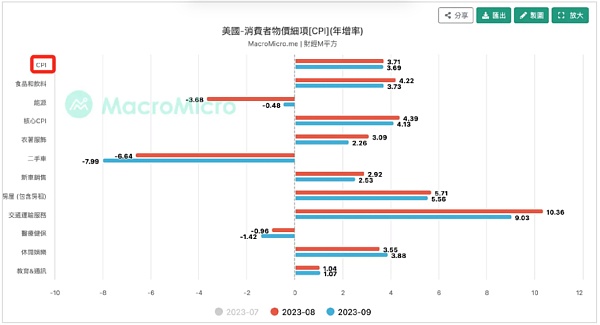例如,和去年9月 CPI 数据相比,2023年9月的 CPI 年增长率为 3.69%,其实也就是 9月的 CPI 同比增长率,和 8月份的同比增长率基本没什么变化。