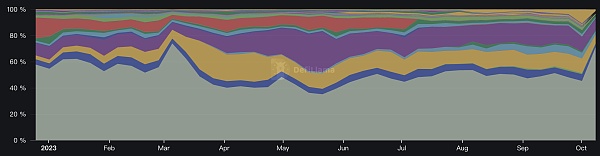 紫色部分为 BNB Smart Chain,市占率位列第二