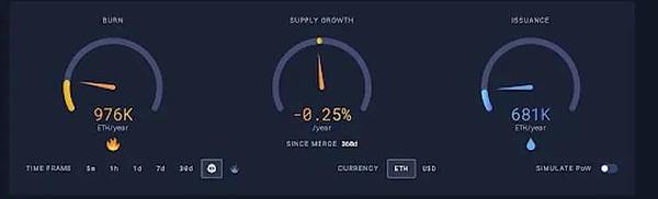 最值得注意的是,此次升级使 ETH 首次出现“通缩” ,这意味着 ETH 的总供应量正在减少而不是增加。如今 ETH 的流通量比一年前减少了 0.24%。供应量的减少部分源于 EIP-1559,这是合并前大约一年的网络升级。EIP-1559 升级开始后,开始“燃烧”网络上的每笔交易中一些 ETH。但直到合并进一步削减新 ETH 的发行速度后,ETH 才出现净通货紧缩。