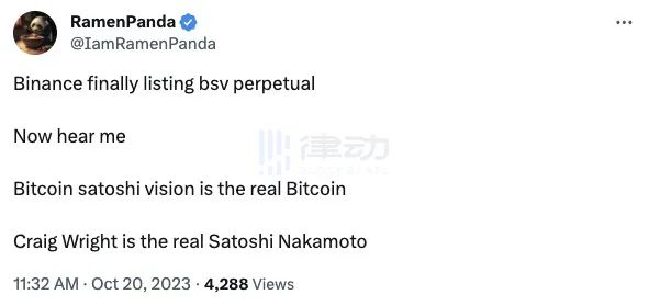 有人发表评论称「BSV 是真正的比特币,而CSW 无疑是真正的中本聪」。虽然这样的观点更多是作为打趣或讽刺的「梗」,如今的币圈叙事已大不同,而CZ 也不再热衷于表达态度。