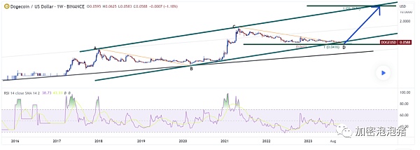 如果这种受模因启发的加密货币的价格飙升 27,000%,它将打破之前的历史新高。这位名为 AMINSHEYBANI 的分析师在TradingView上公布了一张图表,标题为“Doge to the Moon”,正如 Benzinga报道的那样,他们在图表中暗示,潜在的支撑位为 0.058 美元,这可能是大幅上涨的基础,可能导致达到 16 美元的峰值,这意味着加密货币将上涨 27,500%。