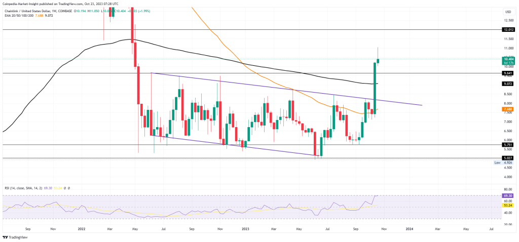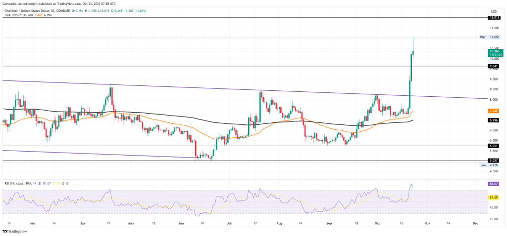 Chainlink价格上涨,突破10美元大关,显示看涨势头