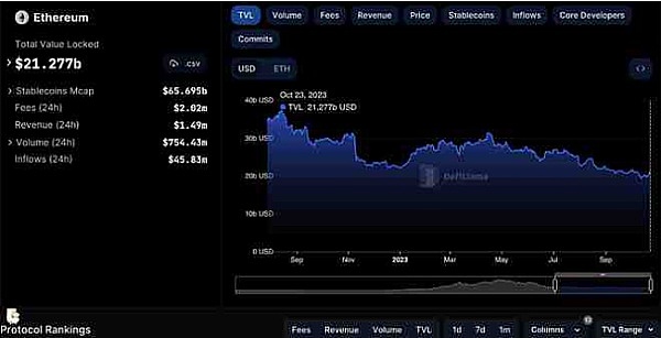 尽管加密货币寒冬漫长,但投资者通过将注意力转向网络上的 DeFi 产品,推动以太坊生态系统的 TVL 达到 212.7 亿美元。过去 24 小时内生态系统的流入记录为 4500 万美元,而流出记录为 149 万美元。