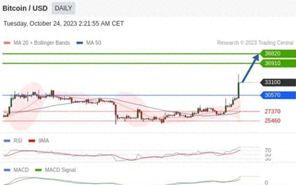 CMTrade总结道:“我们的关键支撑点位于30,570$,只要这个水平得到支持,上涨势头将占上风。另一种情况是,如果价格下破30,570$,我们将寻求27,370$和25,460$的支撑位。”