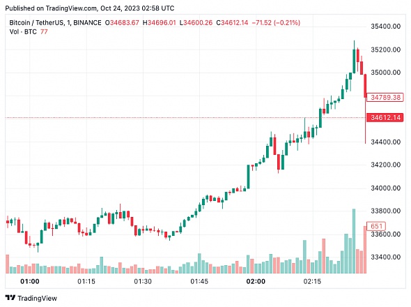 周一,比特币价格触及 1.5 年高点,过去 24 小时内在币安上飙升 15%,至 35,200 美元以上。随着人们对数字资产的兴趣重燃,推动价格走高,全球市值最大的加密货币在过去一周上涨了 20% 以上。比特币上次达到这些水平是在 2022 年 5 月。