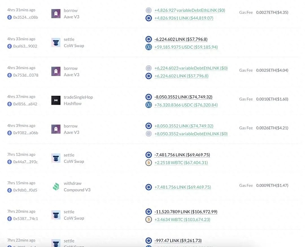$LINK价格上涨后,钱聪明在做什么?那些利用$LINK价格波动赚钱的钱包正在做空$LINK。鲸鱼C以9美元的价格卖出了全部38,381个$LINK(价值34.6万美元),然后从Aave借了38,747个$LINK(36.9万美元),以9.5美元的价格卖出。这种策略允许他们从价格下跌中获利。
