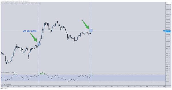 匿名加密货币分析师Credible Crypto在社交媒体平台X的个人账户上表示,比特币在达到35,200美元左右(2023年最高水平)后,已经开始为更强劲的反弹做准备。该分析师表示,比特币的相对强弱指数(RSI)目前处于周线图上的看涨区域,表明最大的加密货币的势头正在增强。