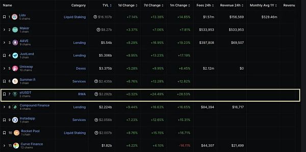 据DeFiLlama数据,stUSDT当前TVL高达22.92亿美金,在DeFi协议中排名第七。