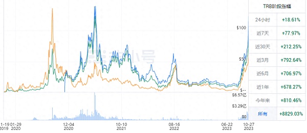 最近比特币(BTC)的大涨,导致许多山寨币也跟随上涨,其中TRB代币也不例外!这让很多人暗自窃喜!