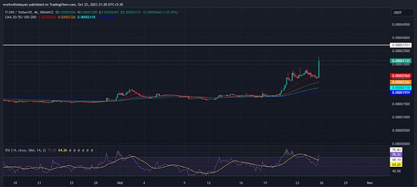 在多头捍卫从 0.00002445 美元进一步下跌后,Floki Inu 目前正在见证飙升。弗洛基正在尝试看涨突破,因为它飙升至恐惧区域上方。截至撰写本文时,Floki 价格交易价格为 0.000031 美元,较昨天上涨 22% 以上。