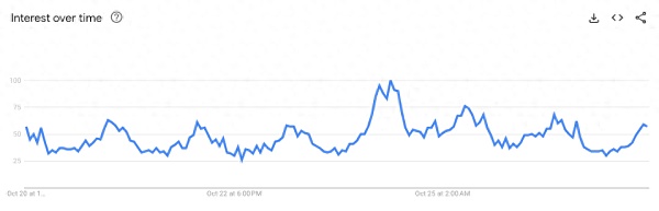 进一步缩小搜索范围,全球关键词“现在是购买比特币的好时机吗?”的搜索量上涨了110%。而和贝莱德比特币ETF相关的搜索词增长了250%,显示出人们对贝莱德现货比特币交易所交易基金(ETF)的广泛兴趣,该基金目前正在等待批准。