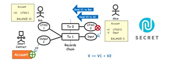 SECRET遵照的UTXO(未花费交易支出)模型类似于比特币的模型,每一个UTXO被称为一个Note(票据),记录每笔交易的变化。Note(票据)是SECRET协议里运算的基础单元,票据的值都会被加密,每个票据的状态都记录在票据登记处(note registry)里。