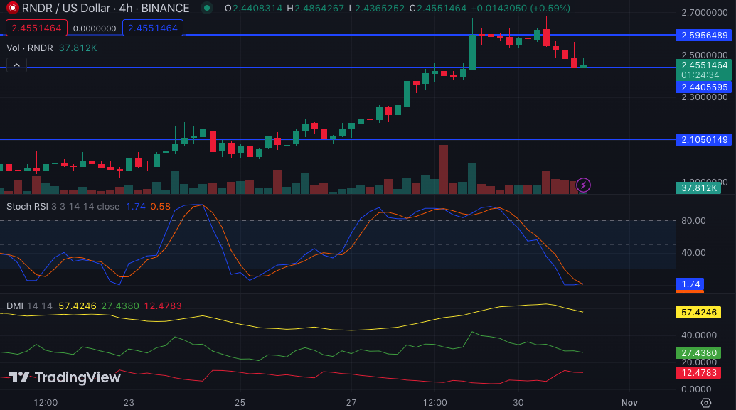 RNDR/USD 4小时图显示该代币正在经历调整期。考虑到价格从2.10美元增长到2.59美元期间几乎没有获利了结,这一趋势是可预见的。