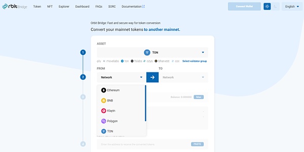 在2022年12月1日,Orbit Bridge 宣布增加对TON网络的支持。除了原生资产TON,Orbit Bridge还支持Ethereum、BNB、Klayth、Polygon等多个区块链,允许用户在TON网络和其他区块链之间进行资产跨链转移,包括USDC、USDT、MATIC等多种资产。此外,Orbit Bridge还与TON网络加强合作,开发了基于Ozys技术的基于AMM(Automated Market Maker)的去中心化交易所Megaton Finance,该交易所预计将于2023年1月份上线。