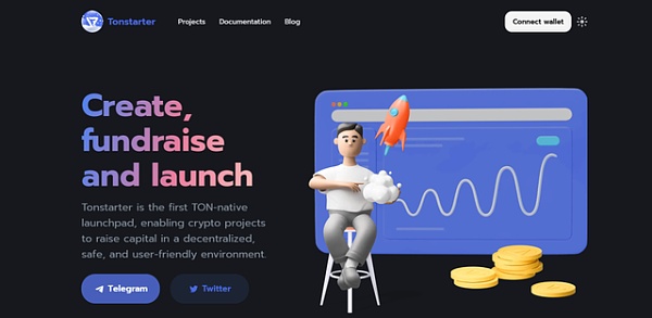 Tonstarter是第一个TON区块链上的原生项目启动平台,致力于为一些有潜力的早期项目提供资金支持。Tonstarter已成功帮助Fanzee Labs等项目筹集资金,并目前正在寻找与稳定币、去中心化交易所(DEX)、借贷等领域相关的项目进行深度合作,并协助它们筹集资金。