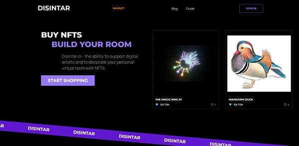 Disintar 是 TON 区块链上的一个主要 NFT 交易市场,不仅提供基本的 NFT 交易功能,还允许创作者轻松将他们的作品发布为 NFT,无需深厚的技术知识。此外,用户还可以创建个人的 NFT Room,用于转移、出售和存储他们的 NFT。目前,Disintar 仍处于测试阶段。