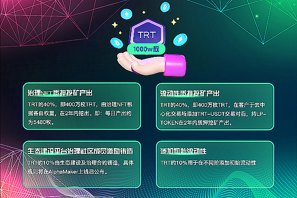 创世NFT销售收入的50%将用于添加TRT的初始流动性,具体交易对为TRT-USDT,1个TRT可以兑换成1个USDT。