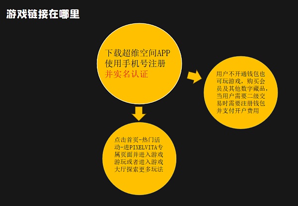 目前启动游戏仅需要下载超维空间APP,首页热门活动中选择PIXELVITA,即可进入游戏和游戏大厅。