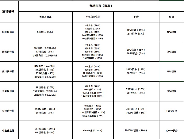 获取宝箱后,用户可选择交易宝箱,或者进入超维空间-热门活动-PV游戏大厅开箱随机获取可交易伙伴、道具、金币,积分;