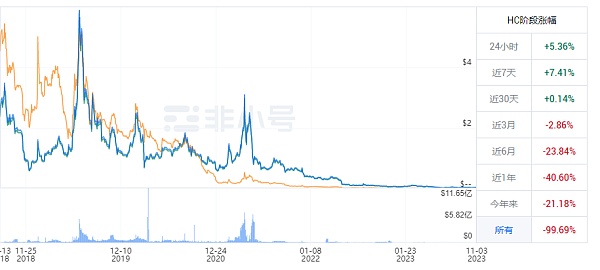 根据上图,HC币在过去24小时中的涨幅为+5.36%,24小时成交量为294.62万,24小时成交额为131.48万。
